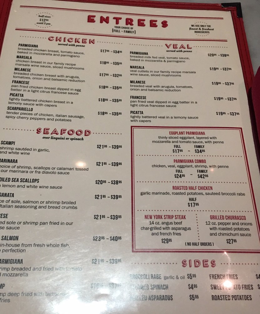 Thinly sliced, lightly fried, fresh mozzarella, tomato sauce, Parmigiano, side of penne pomodoro.